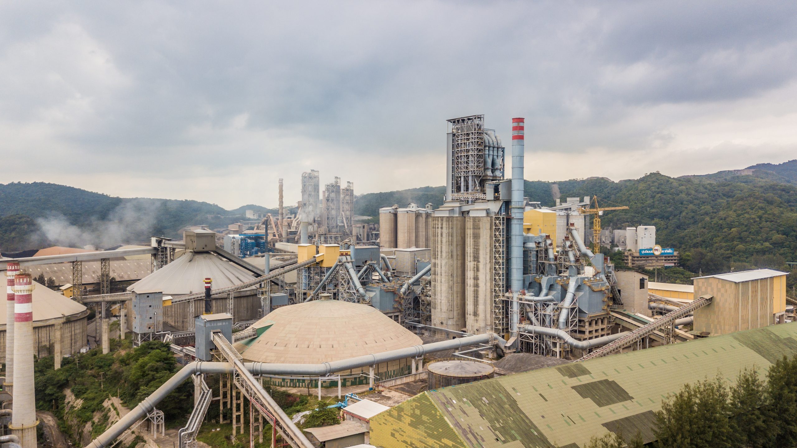 Aerial view cement plant factory manufacturing, Cement factory m